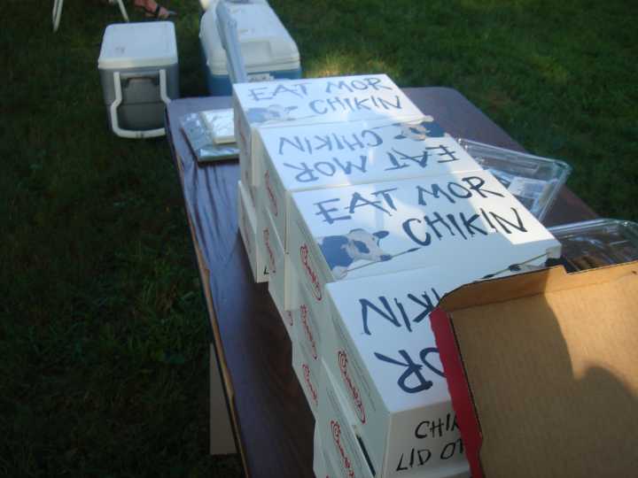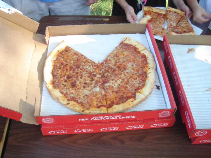 Chick-fil-A chicken sandwiches and Ci Ci's Pizza were served to the hungry neighbors.