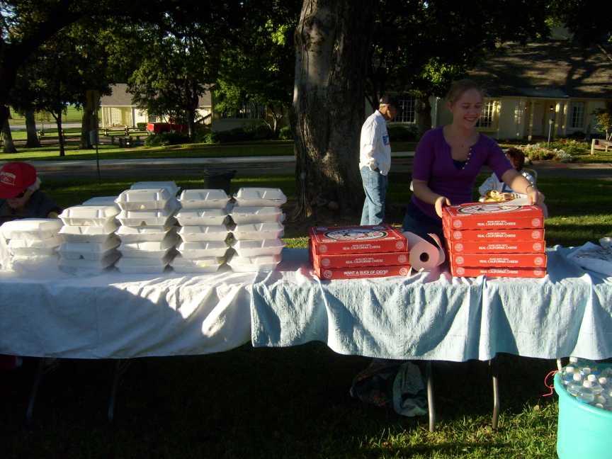 Smokehouse BBQ sandwiches and Ci Ci's Pizza were served to the hungry neighbors.