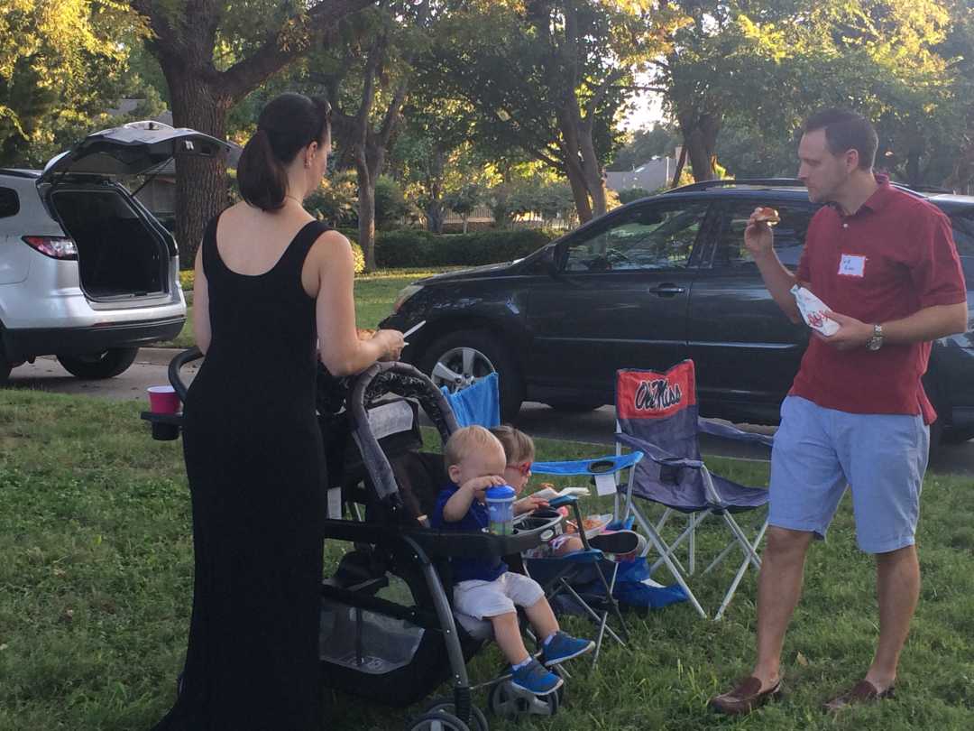 Chick-fil-A chicken sandwiches, Domino's Pizza, salad, tea, and desert were served to the hungry neighbors.