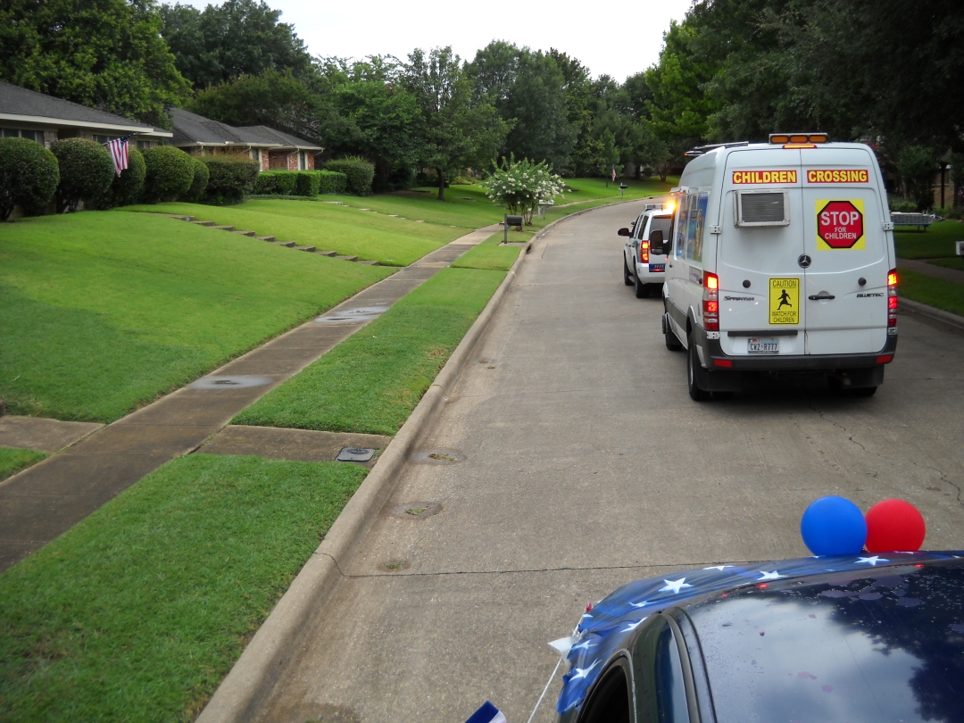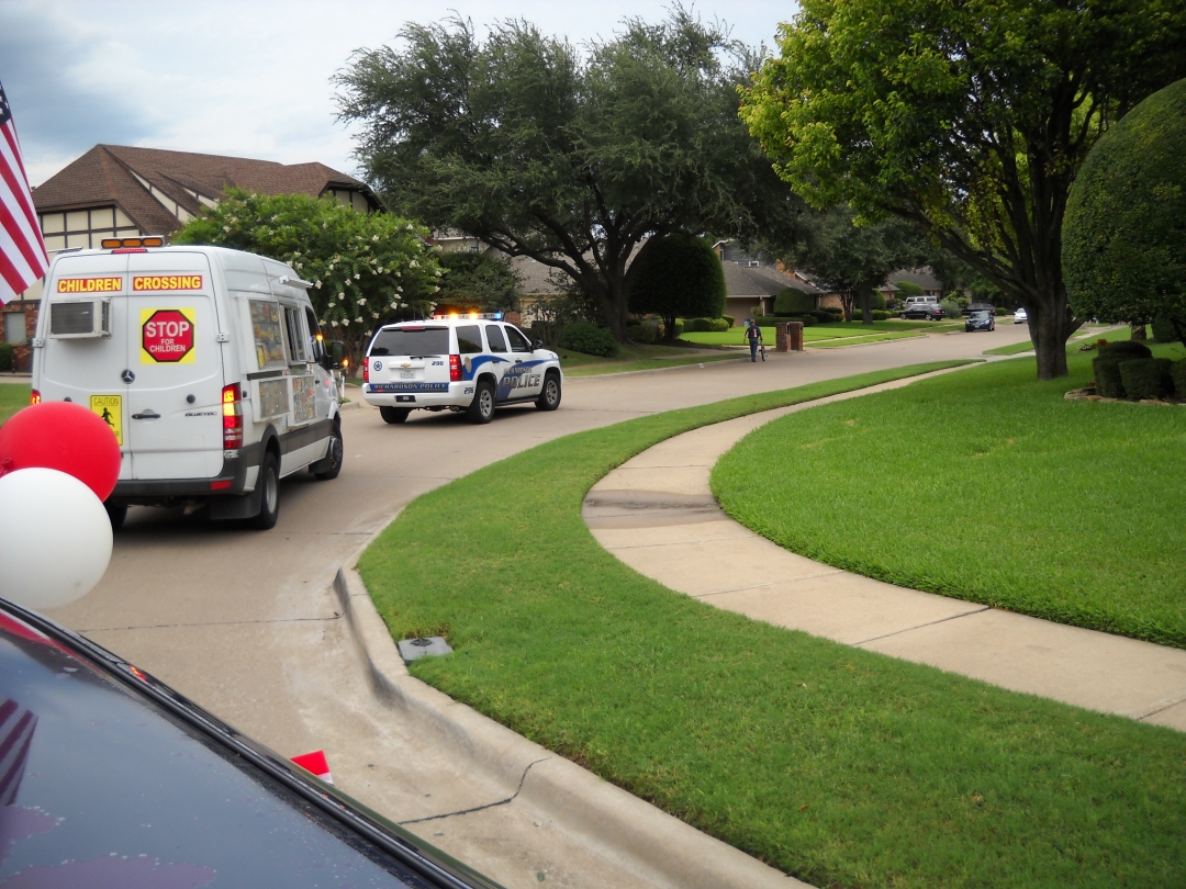 Another stupendous parade through our neighborhood under police escorts and patriotic marching music.