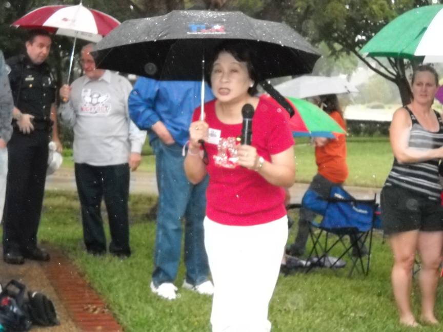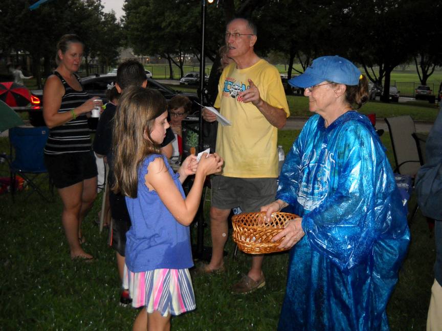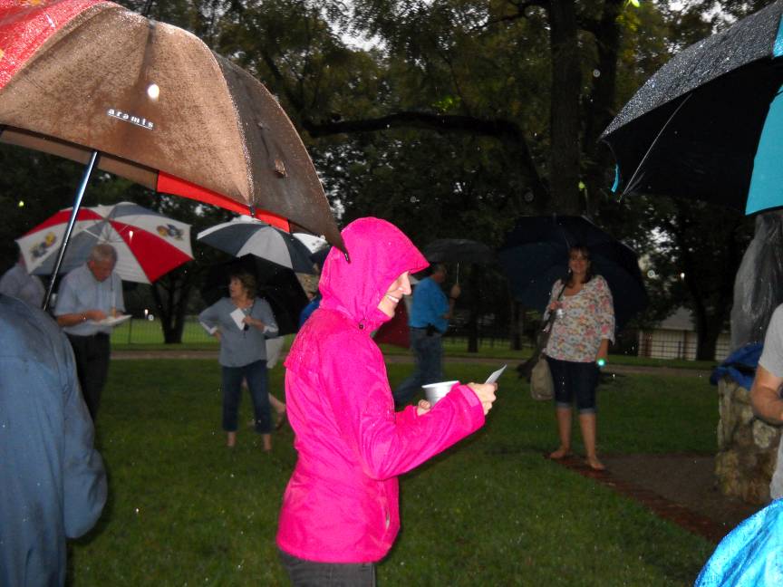 Stormy???? Well, mother nature did turn on the faucet just before we began and intermittantly throughout the evening. Luckily, there wasn't any lightning until it was pretty much complete.