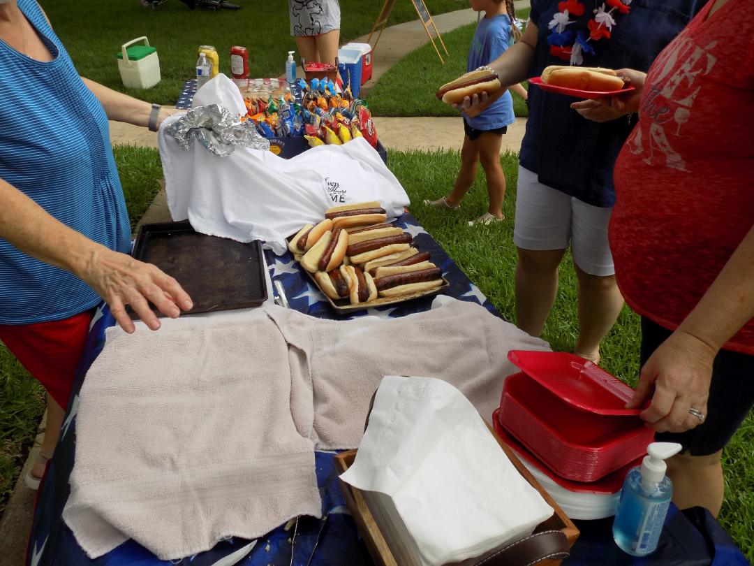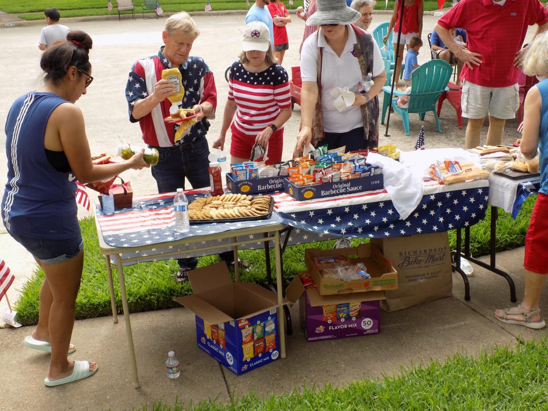 The parade ended at the at Briarwick Ct for hot dogs, chips, cookies, and water.